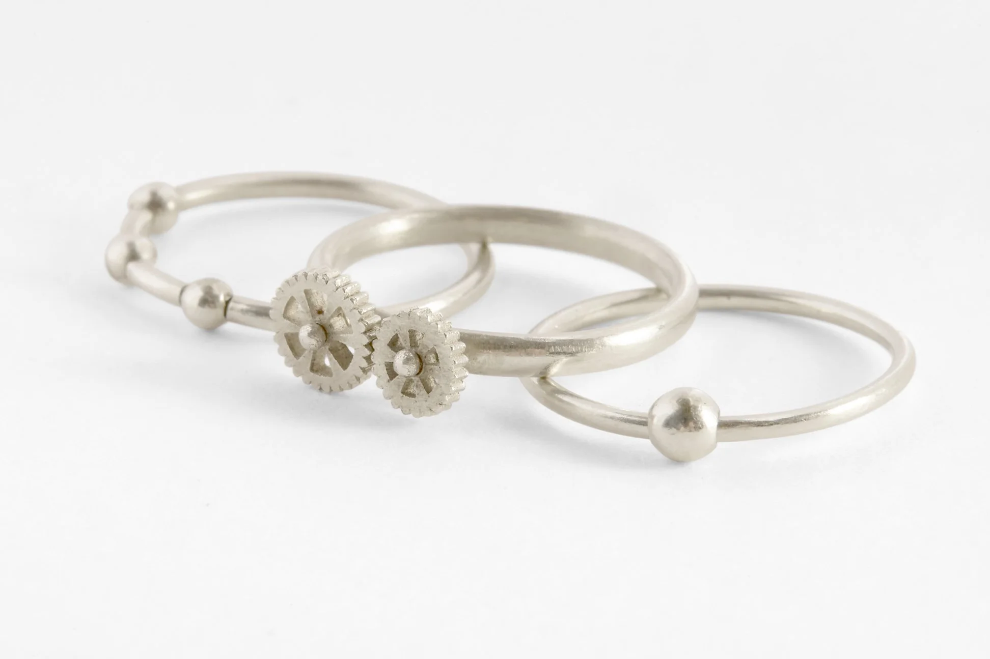Each piece is designed by me and then carefully handcrafted to become a real product. Since creating and wearing Stim Stacked, I’ve found myself more focused, since I now always have a subtle, stylish fidget on hand! My personal favorite piece is the Gear Ring, which consists of two small gears which spin one another around, always calming me down and bringing me back to focus.